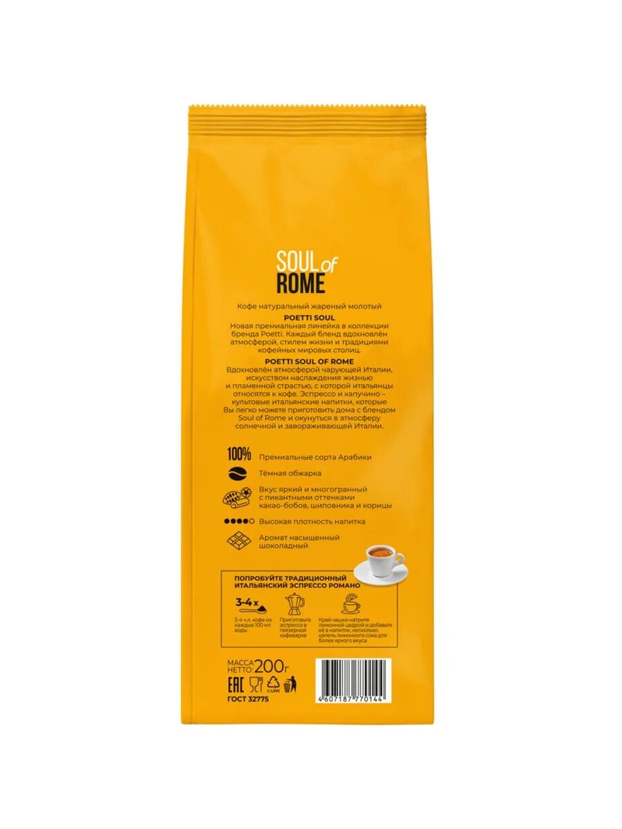 Купить Кофе натуральный жареный молотый Poetti Soul of Rome 200 гр