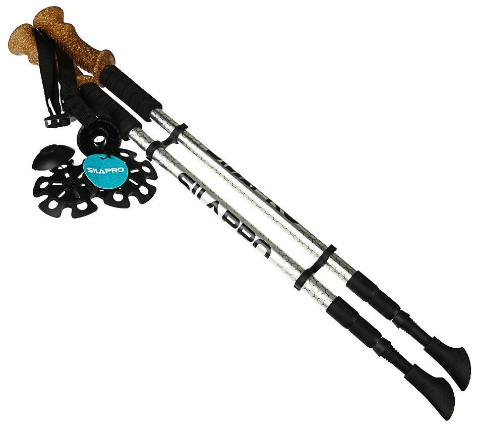 SILAPRO Набор палок для скандинавской ходьбы 2шт, телескопические 65-135см, алюм 6061, пробка, 2 штуки