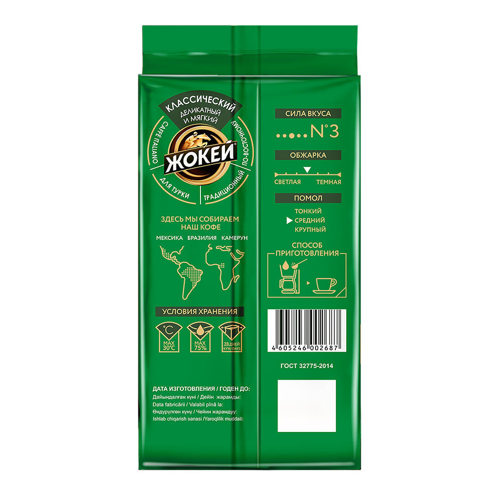 Кофе молотый классический, пакет 250 Г, жокей