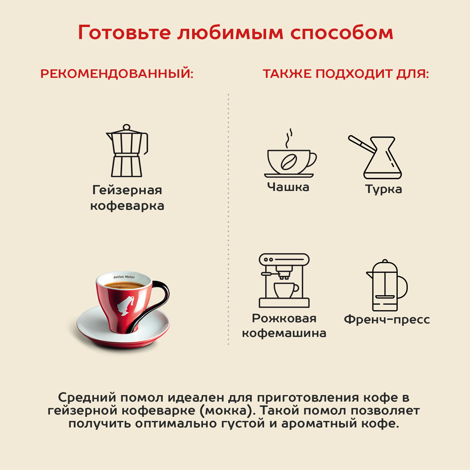 | Способ заваривания | гейзерная кофеварка (мока), джезва, френч-пресс, чашка |