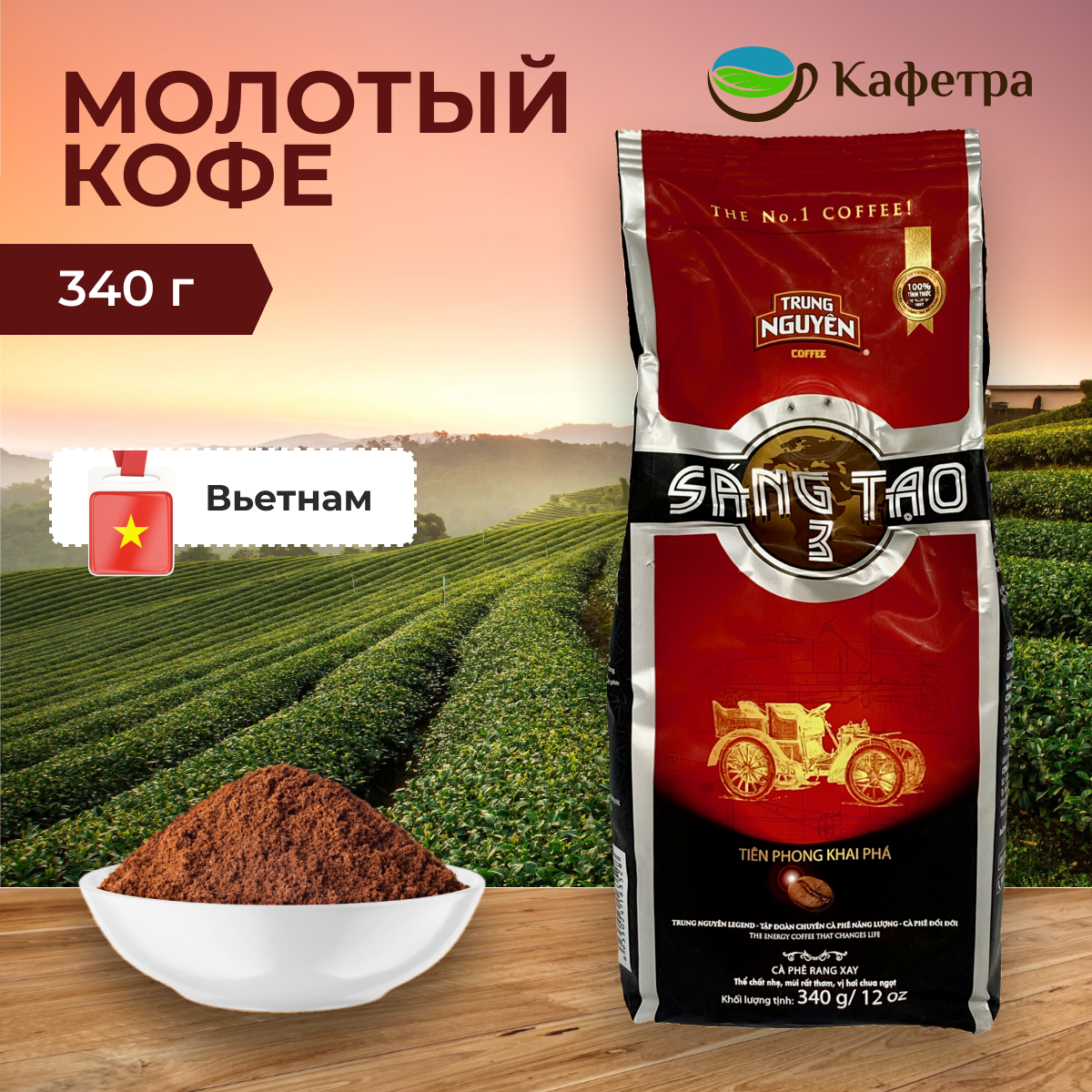 Вьетнамский натуральный жареный молотый Кофе Sang Tao №3, Trung Nguyen, 340 г, 1 шт.