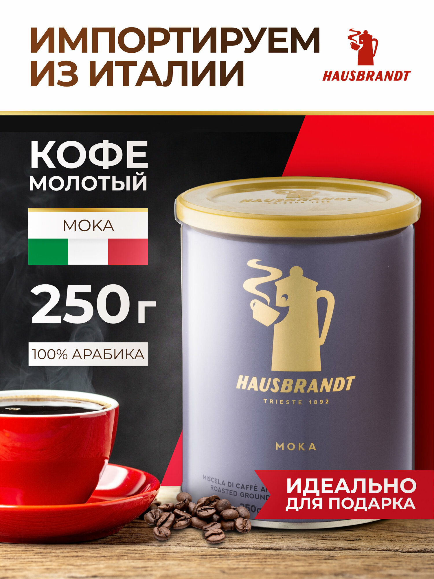 Кофе Hausbrandt "Moka", молотый, 100% арабика, в металлической банке, 250 г