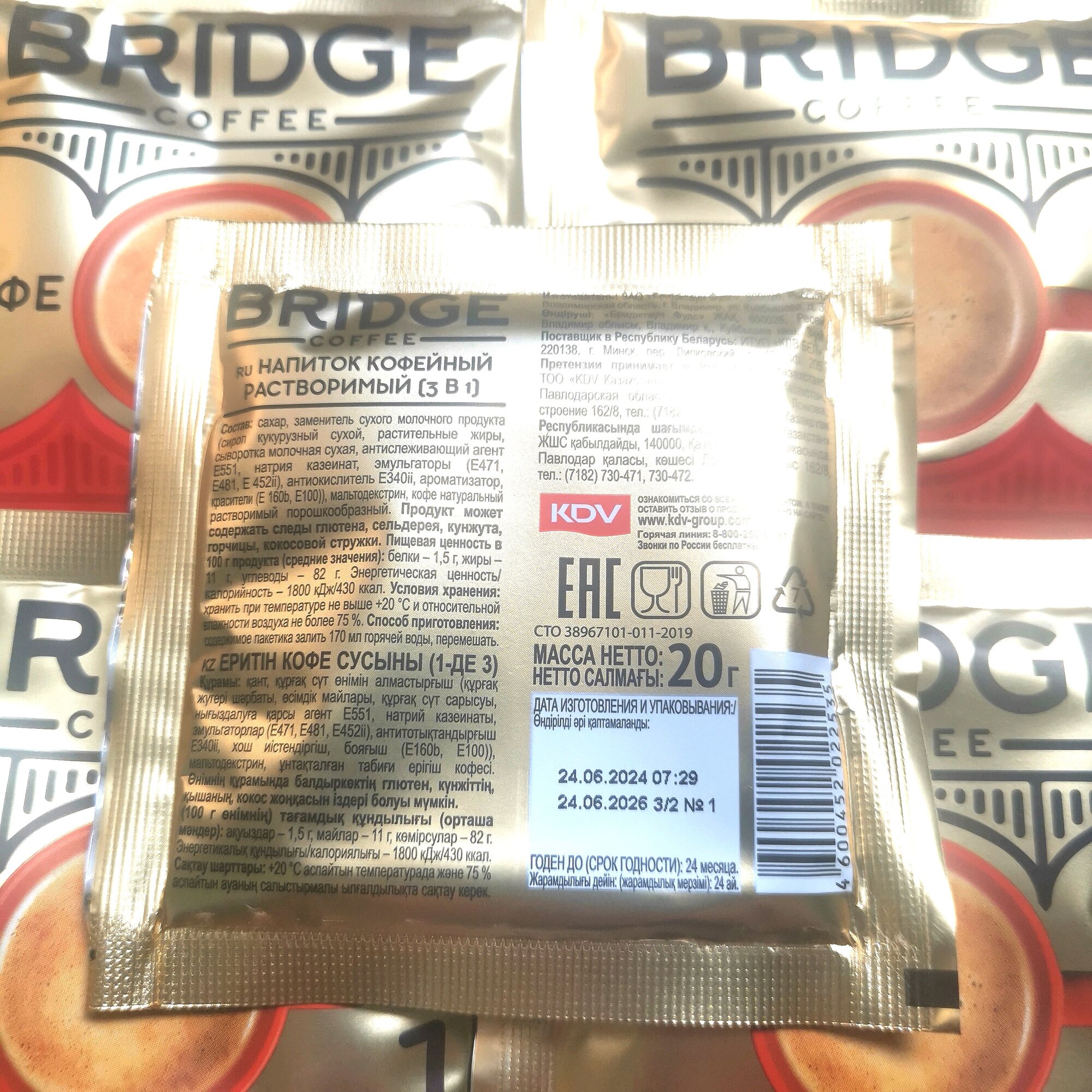 Кофе Bridge Coffee напиток кофейный Латте 3 в 1, 40 шт по 20 грамм КДВ