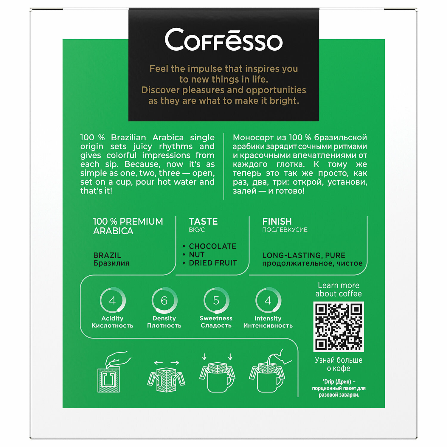 Кофе Coffesso "Brazil Alto" дрип-пакет 5х10г интересное: