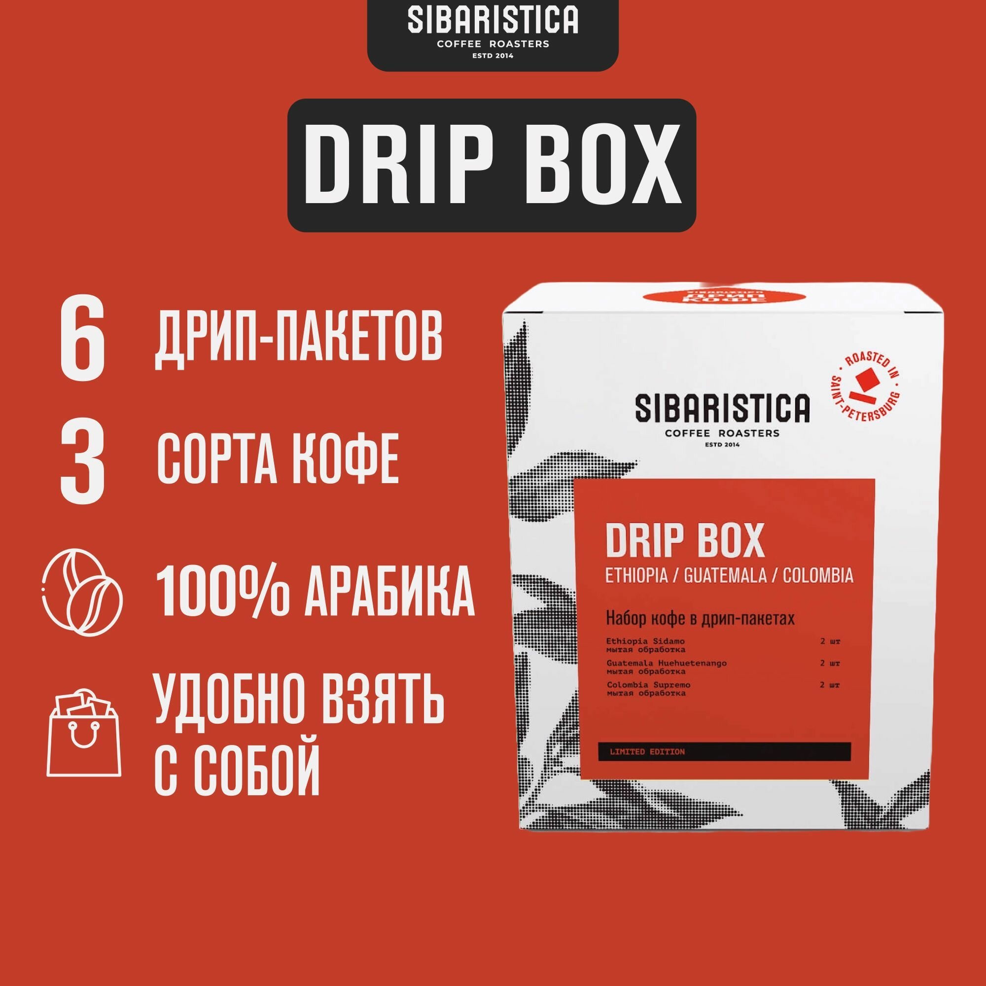 Дрип кофе Sibaristica Drip Box, Эфиопия, Колумбия, Гватемала, (Набор молотого кофе в дрип-пакетах) 6шт*10гр интересное: