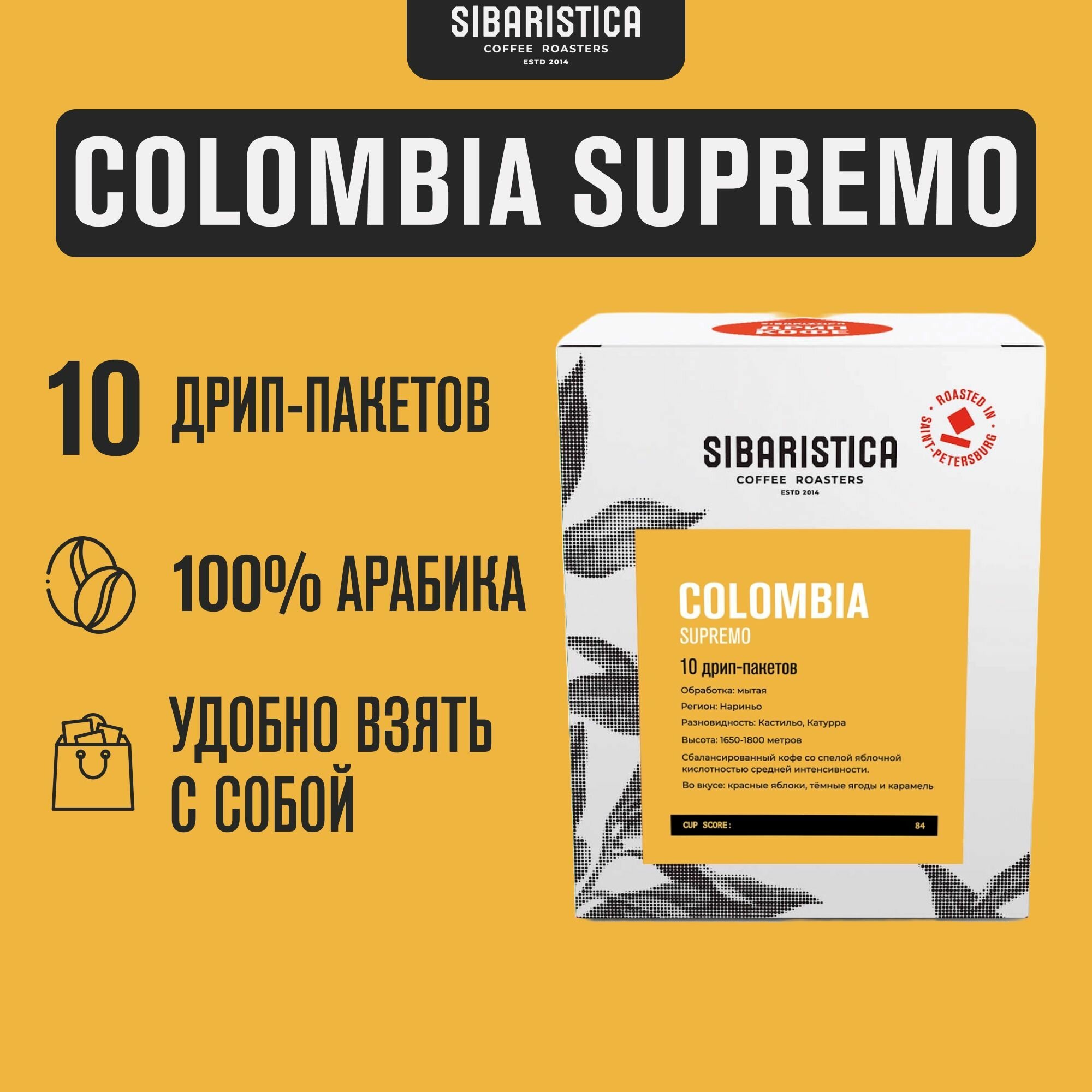 Дрип кофе Sibaristica Colombia Supremo, Колумбия, (Молотый кофе в дрип-пакетах), 10шт*10г интересное:
