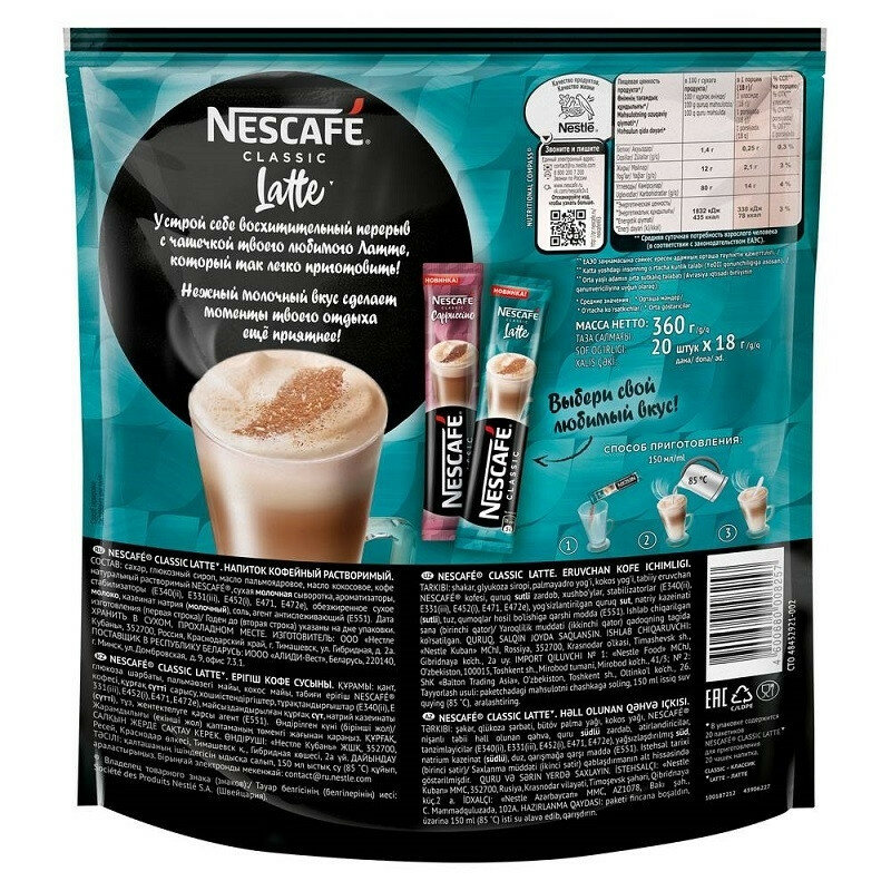 NESCAFÉ® Classic Latte. Напиток кофейный растворимый 20 шт по 18 г