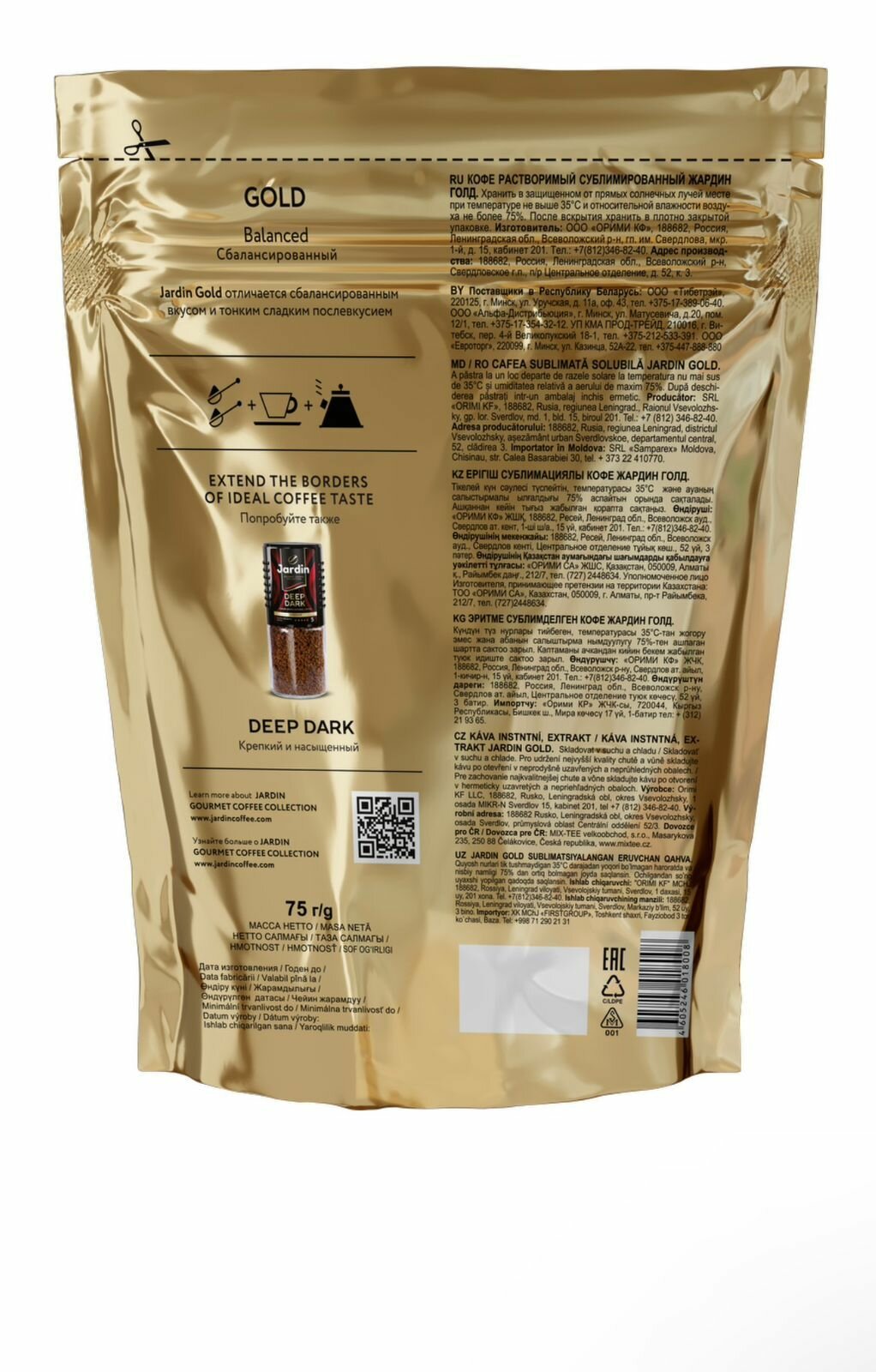Купить Jardin Кофе Голд, растворимый, зип-пакет, 75 г.