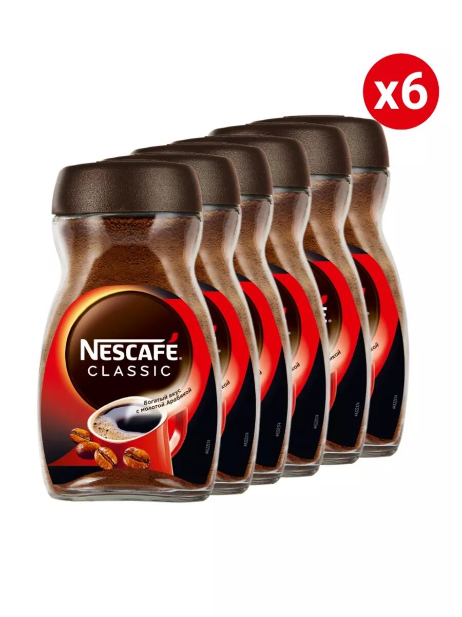 Купить Кофе Nescafe Classic натуральный растворимый порошкообразный с добавлением натурального жареного молотого 95 г, 6 шт