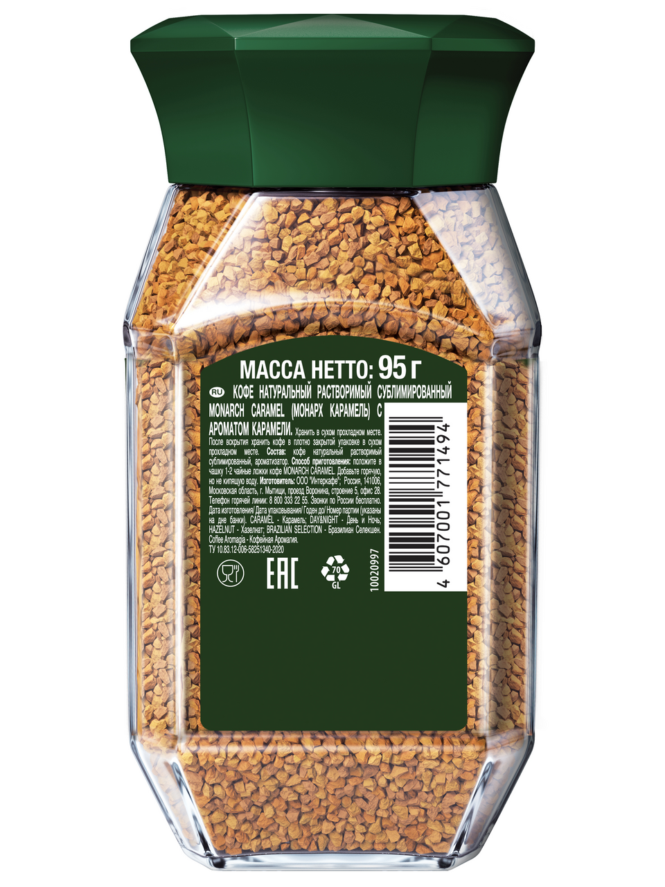 Кофе растворимый Monarch Caramel с ароматом карамели, 95 г интересное: