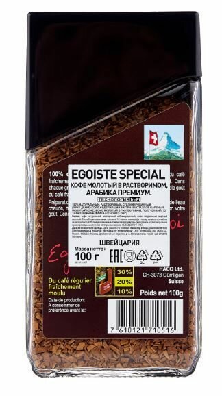 Купить Кофе Эгоист Спешл 100 гр (Egoiste Special) натуральный растворимый сублимированный с добавлением молотого стеклянная банка/Швейцария