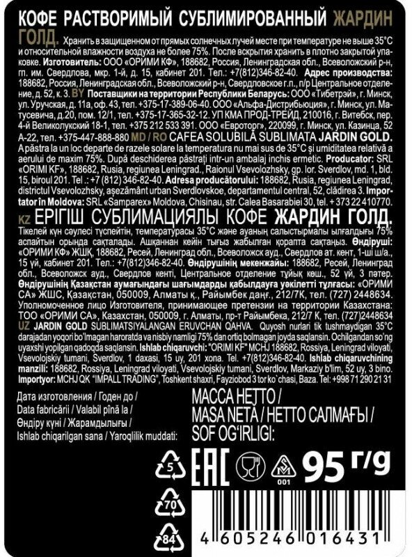 СохранитьКофе растворимый Jardin Gold, стеклянная банка, 95 г интересное: