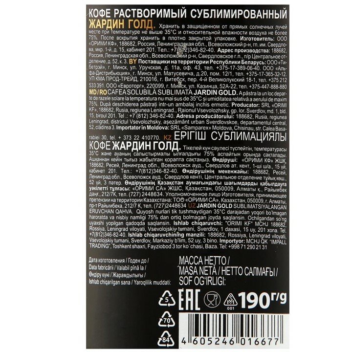 Ниже Вы можете прочитать отзывы на Jardin Gold 190г.кофе раст.субл.ст/б кф, ознакомится с подробными характеристиками, посмотреть интересные обзоры и фотографии на Jardin Gold 190г.кофе раст.субл.ст/б кф.