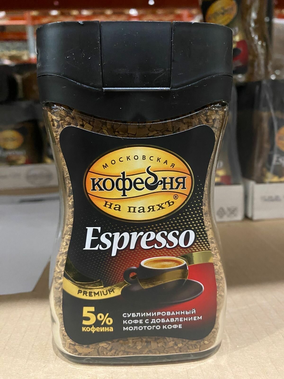 Кофе растворимый сублимированный Московская Кофейня на Паяхъ Espresso с молотым кофе, 95 г стеклянная банка