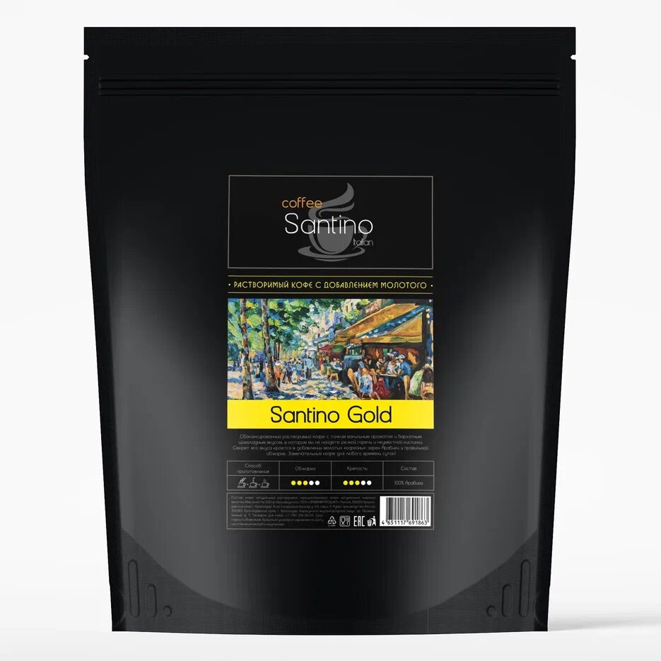 Кофе растворимый 500гр с добавлением натурального жареного молотого кофе Santino Gold интересное: