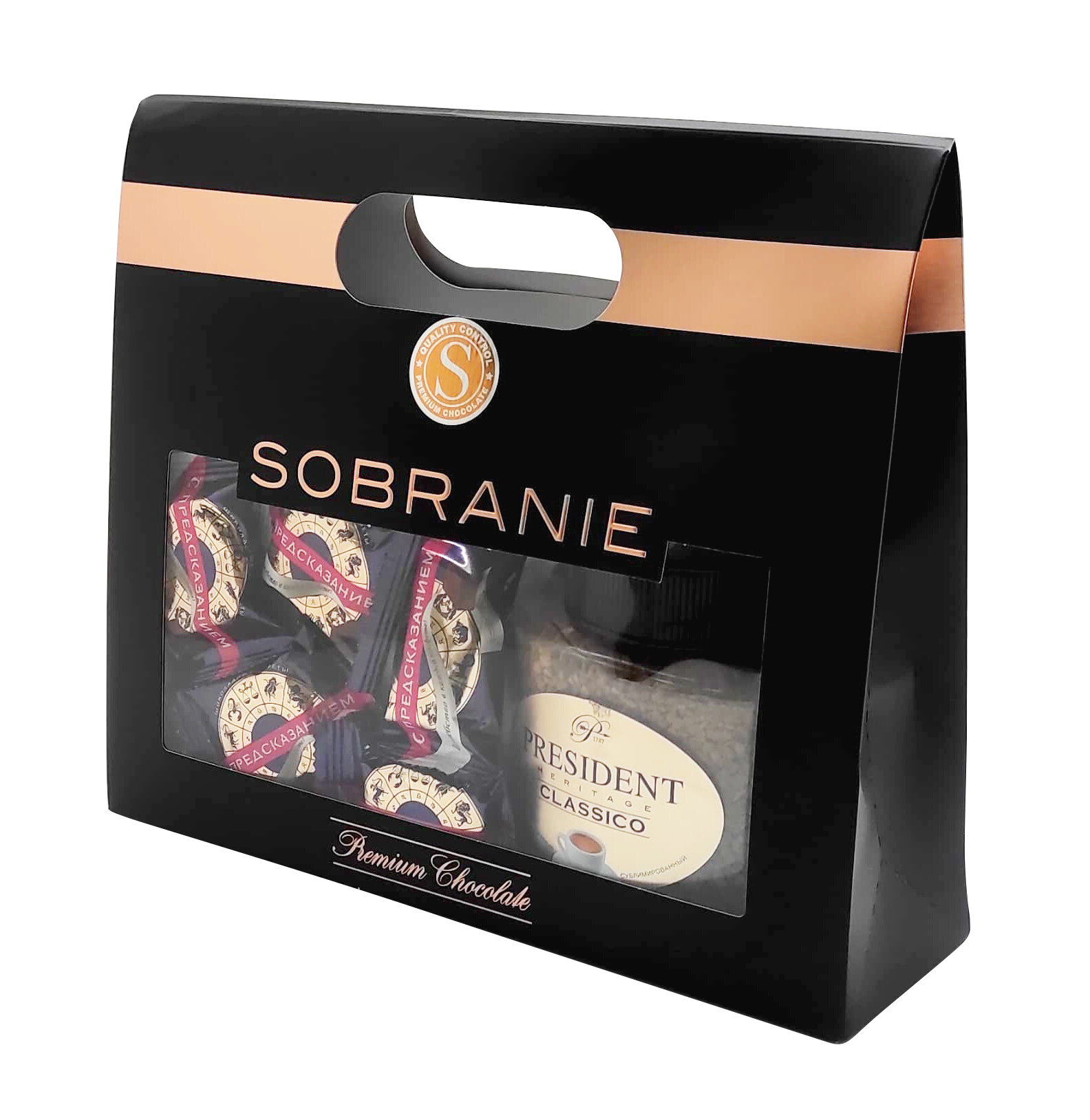Купить Подарочный набор SOBRANIE (Кофе PRESIDENT HERITAGE Classico 100гр и Конфеты с предсказаниями) черная сумочка
