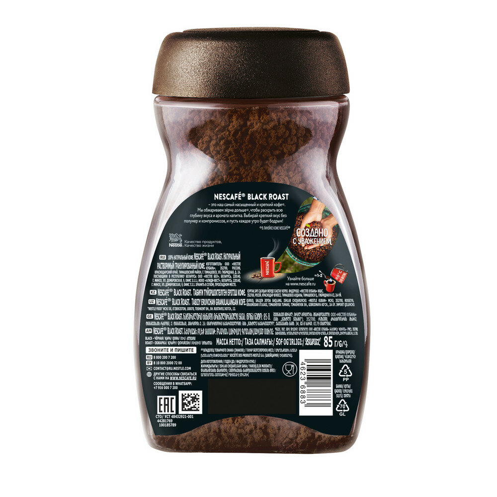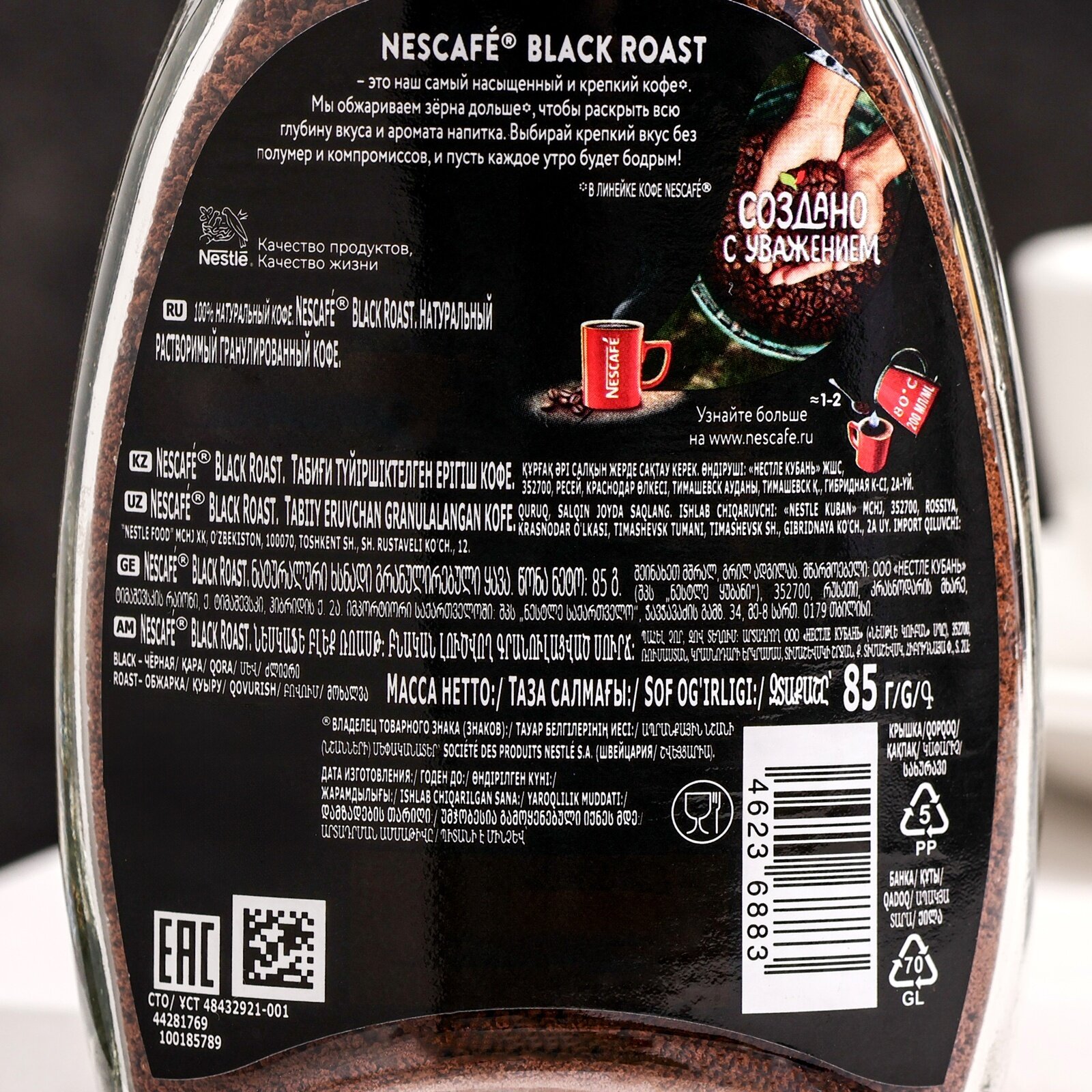 Кофе Nescafe, Black Roast растворимый, гранулированный, стеклянная банка, 85 г интересное: