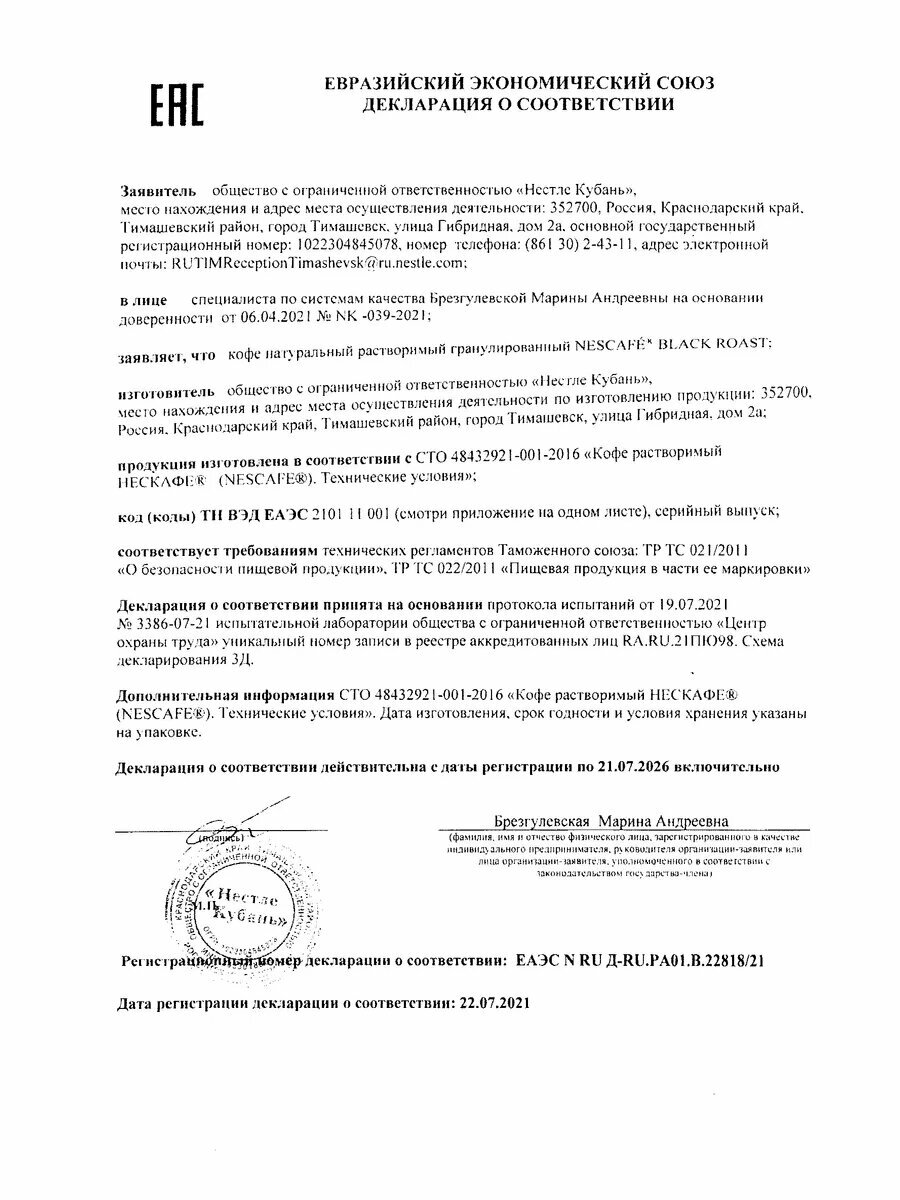 | Состав | Кофе натуральный растворимый гранулированный |