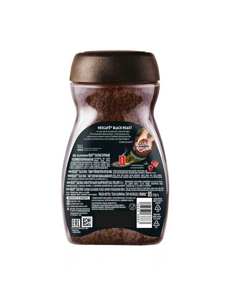 Кофе Nescafe, Black Roast растворимый, гранулированный, стеклянная банка, 85 г