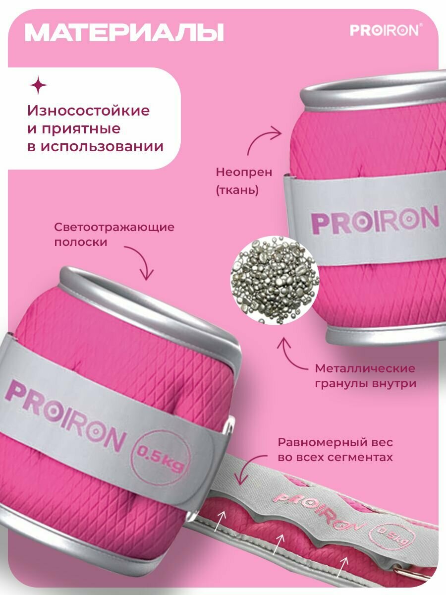 Утяжелители для ног, рук, 0,5 кг, PROIRON, набор 2 штуки, розовые интересное: