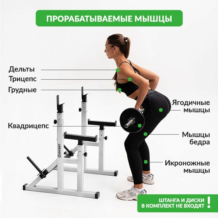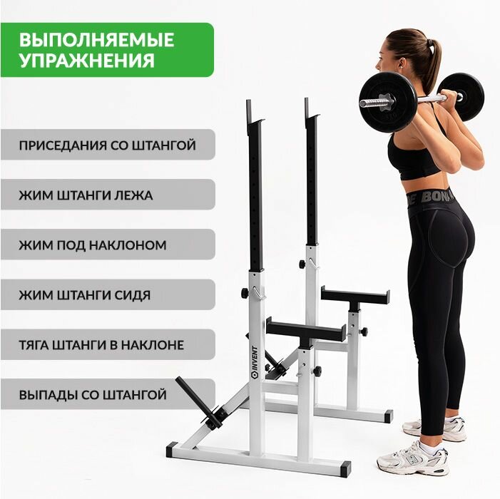 Стойка для штанги с подстраховкой металлическая, подставка под штангу с системой хранения дисков INVENT ST-02 интересное: