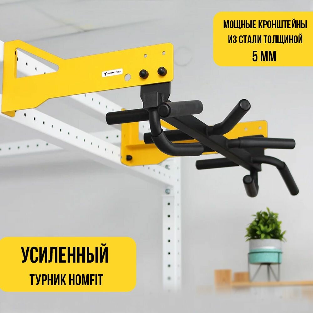 Турник на стену HOMFIT 5 хватов - усиленные кронштейны, вынос 45 см