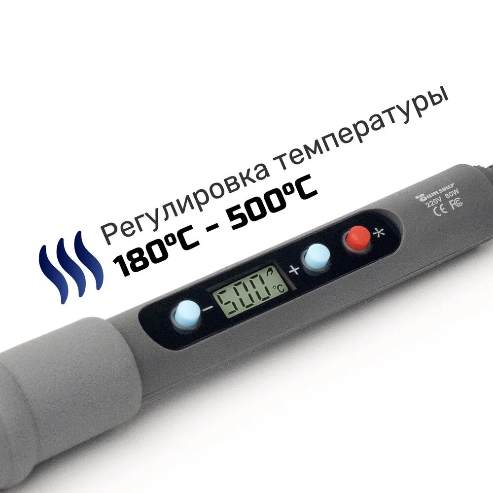 Паяльник 80 Вт с регулировкой температуры и ЖК-дисплеем Sumsour, 9 предметов