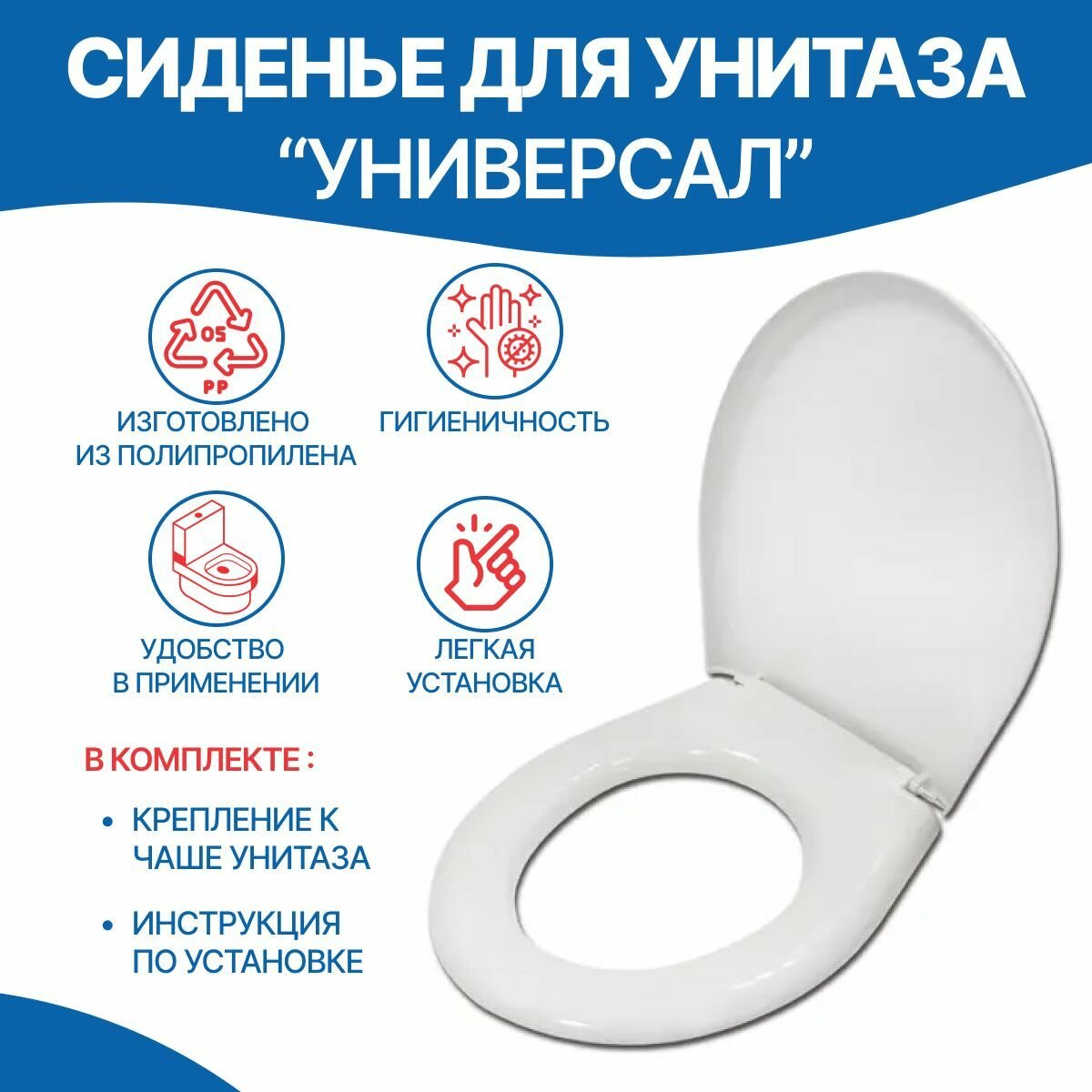 Сиденье для унитаза Универсал, белый, полипропилен, крепления пластик инкоэр (Россия) интересное: