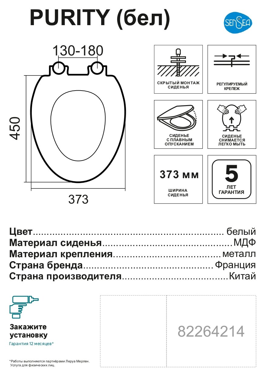 | Дополнительная информация | Сиденье для унитаза Sensea Purity овальное цвет серый дуб |