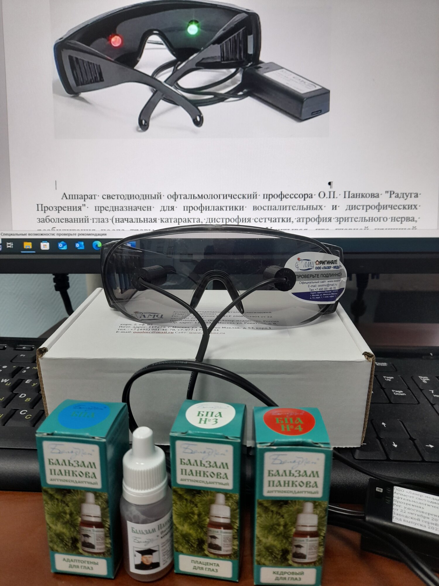 Аппарат светодиодный офтальмологический "Радуга прозрения" - очки профессора Панкова + Бальзам Панкова антиоксидантный (капли глазные) интересное: