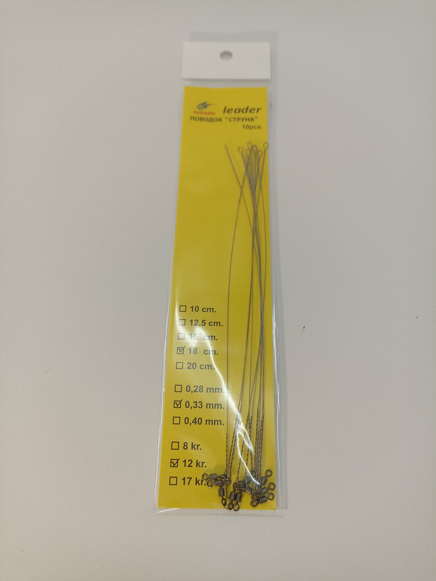 Поводок рыболовный "Струна" с вертлюжком 18 см, 0,33 мм, 12 кг 10 шт интересное: