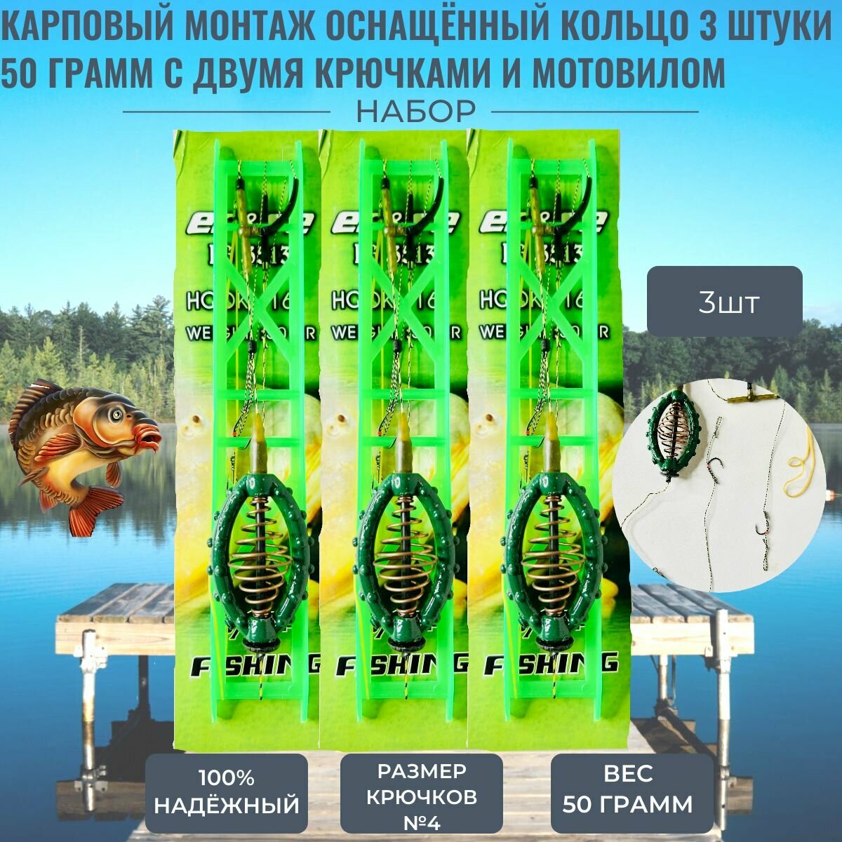Купить Карповый монтаж оснащённый Кольцо-Крафт 3 штуки 50 грамм с двумя крючками и мотовилом