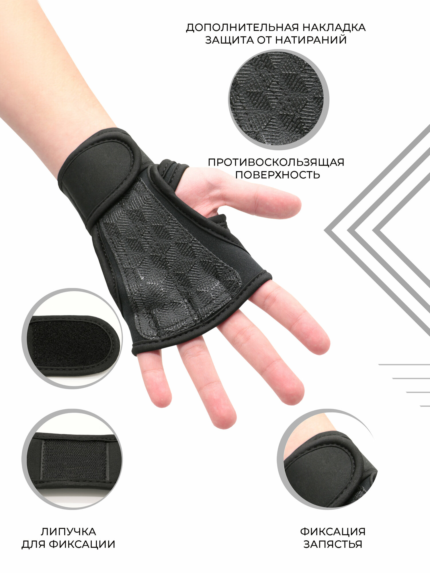 Перчатки для турника и грифа Boomshakalaka, цвет черный, размер L, обхват ладони 218-238 мм.