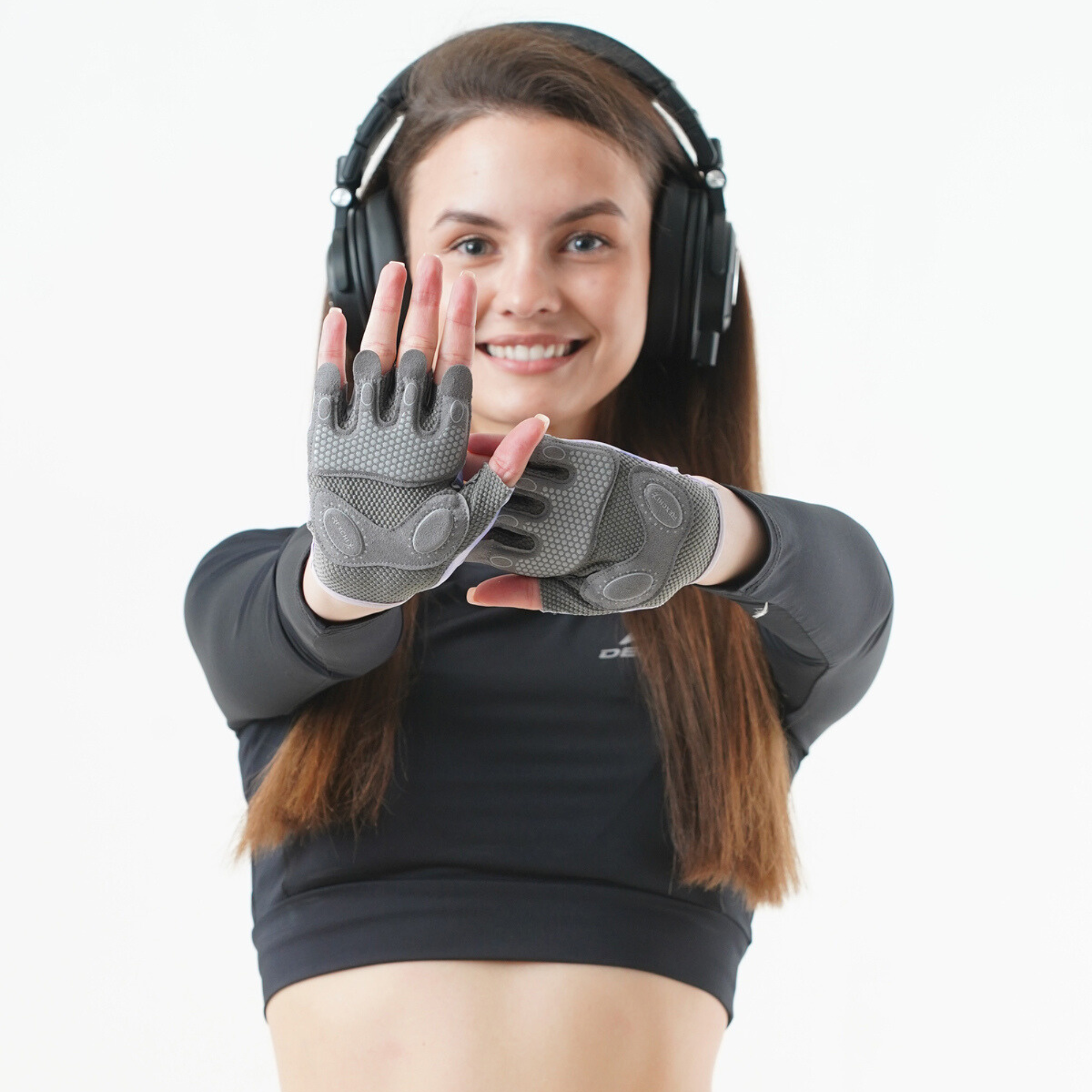 Перчатки для фитнеса, велосипеда, тренажерного зала. Перчатки женские спортивные, универсальные, серые, размер M