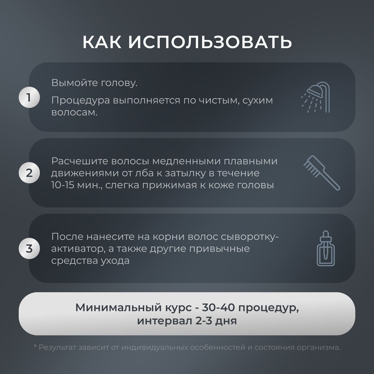 Прибор не эффективен, если у Вас имеются какие-либо проблемы со здоровьем, сопровождающиеся выпадением волос. |