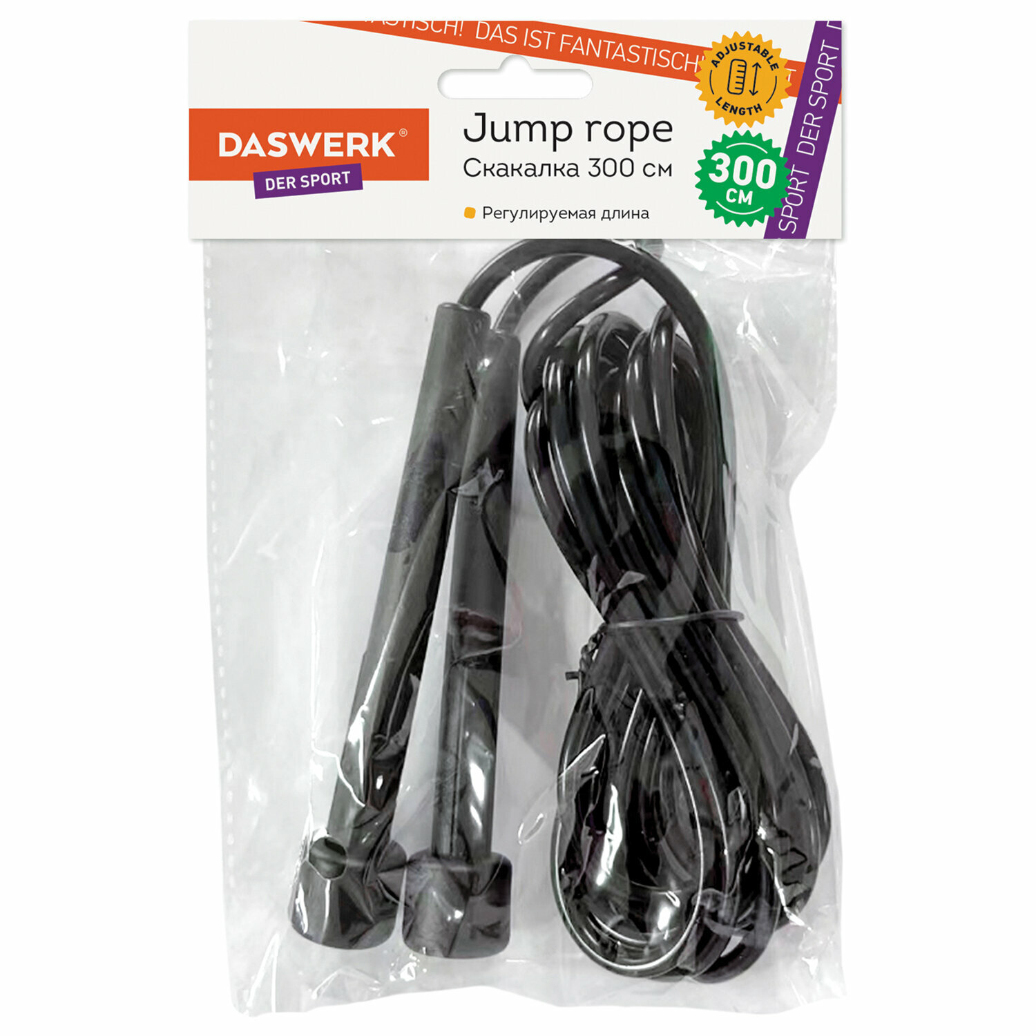 Скакалка спортивная, прыгалка гимнастическая 300 см, Пвх, регулируемая длина, черная, Daswerk, 680027 интересное: