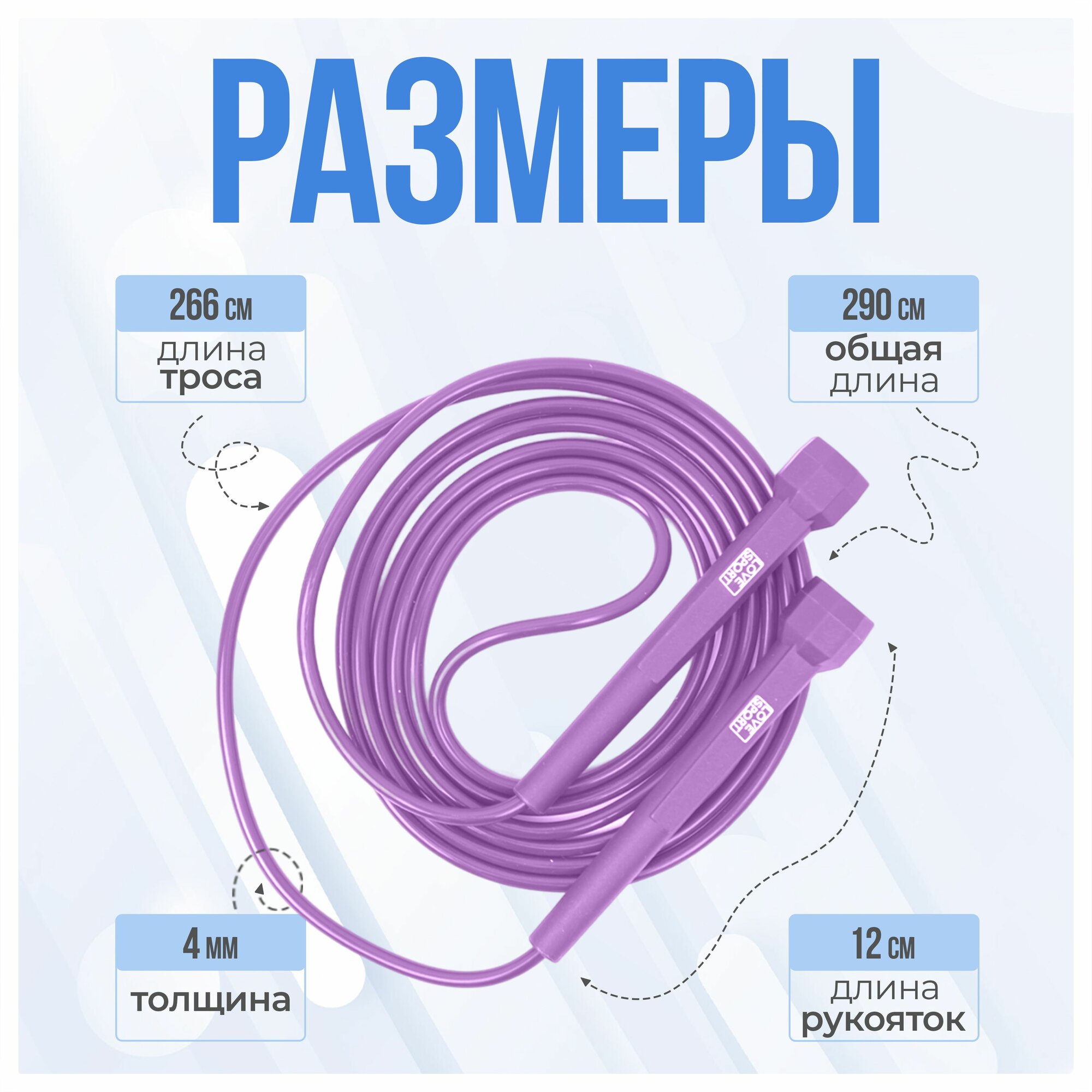 Скакалка регулируемая BASIC до 300 см, спортивная, для фитнеса, для детей и взрослых, фиолетовая интересное: