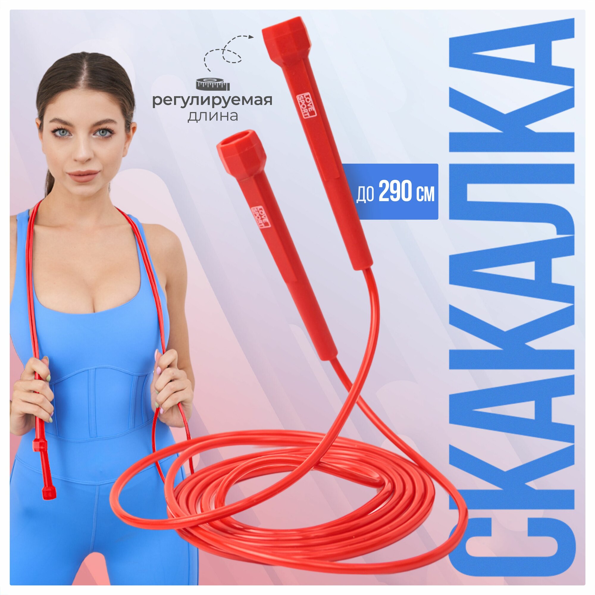 Скакалка регулируемая BASIC до 300 см, спортивная, для фитнеса, для детей и взрослых, красная интересное: