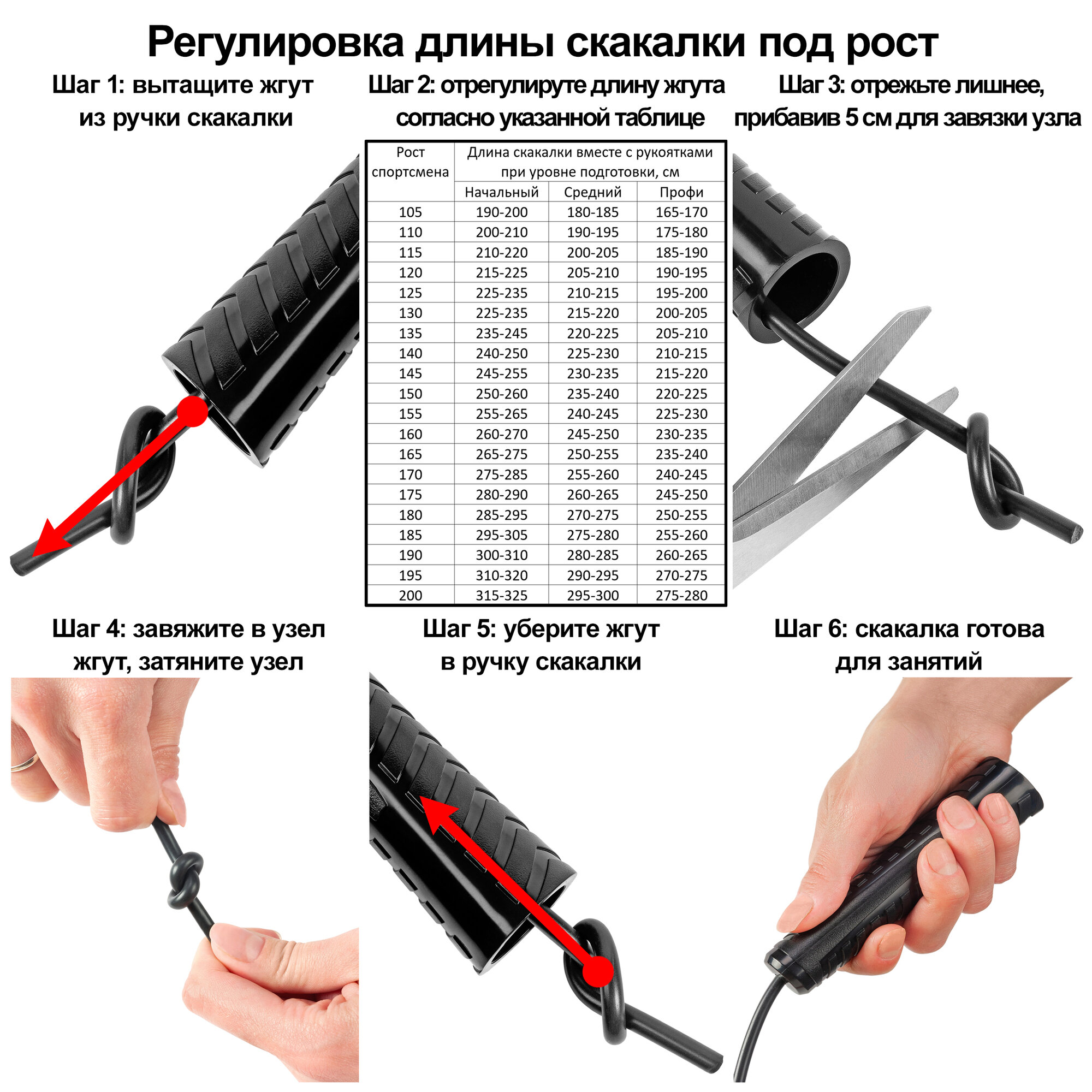 | Особенности | регулировка длины / шнур на подшипнике / эргономичные рукоятки |