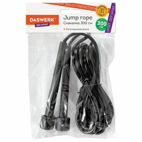 Купить Скакалка спортивная 300 см, ПВХ, регулируемая длина, черная, DASWERK, 680027, 2 штуки