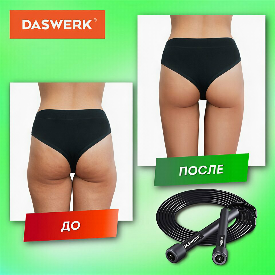 Скакалка спортивная 300 см, ПВХ, регулируемая длина, черная, DASWERK, 680027, 2 штуки интересное: