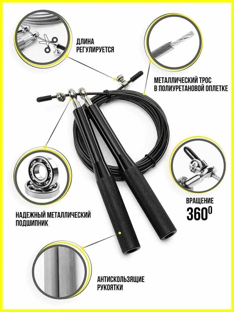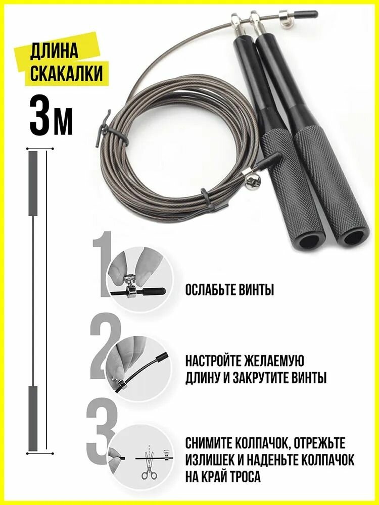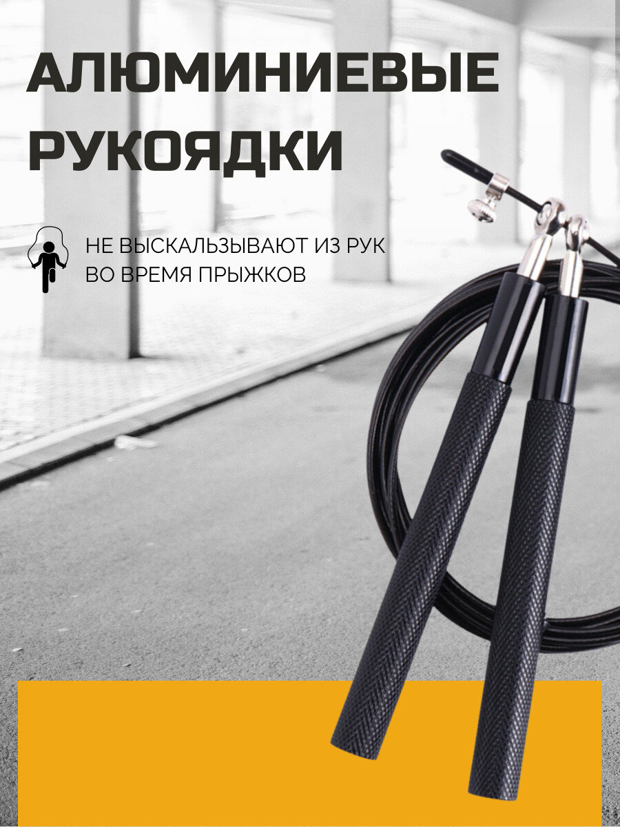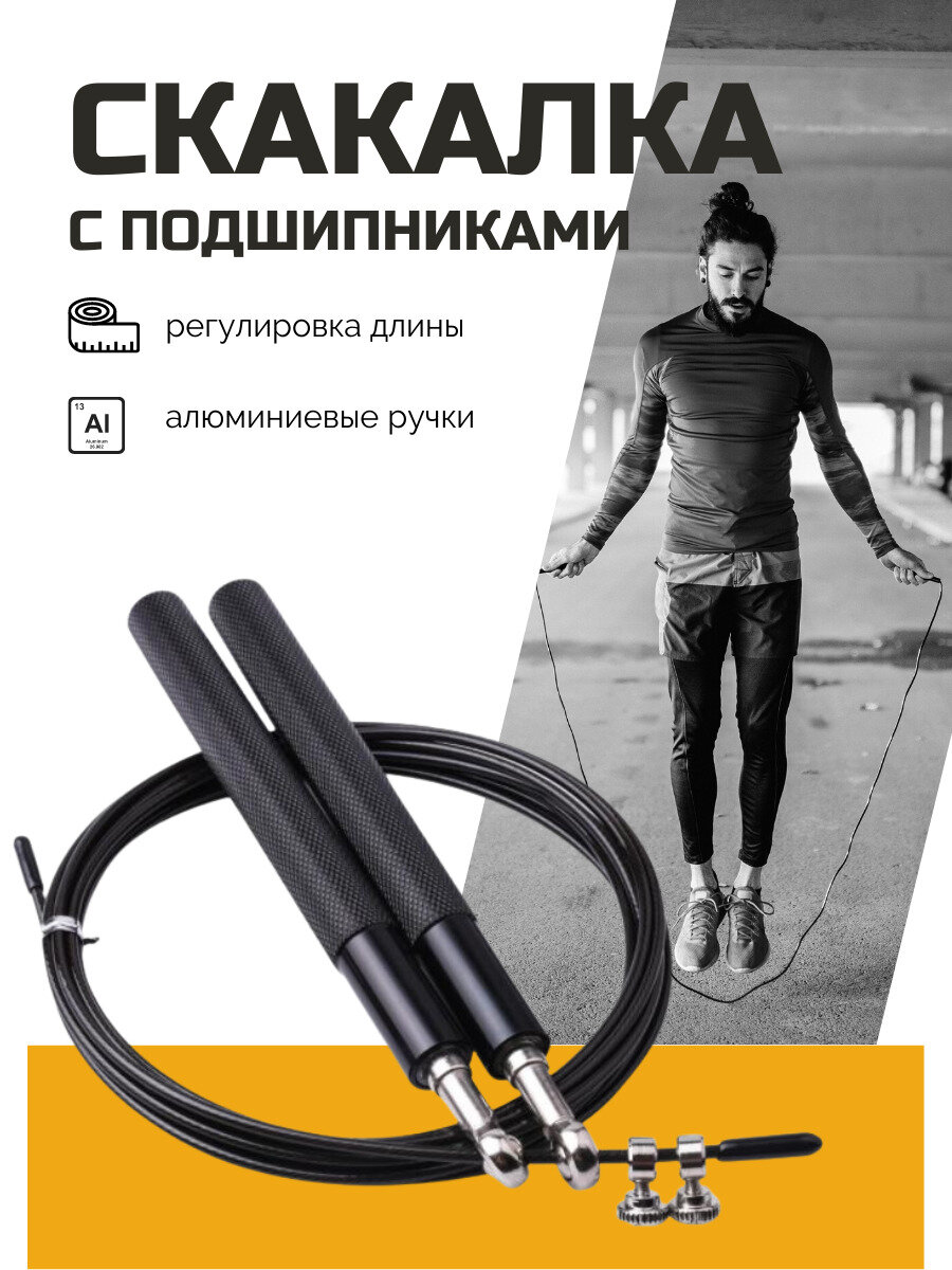 Скоростная скакалка для спорта и тренировки / подшипник и регулятор длины / черная интересное: