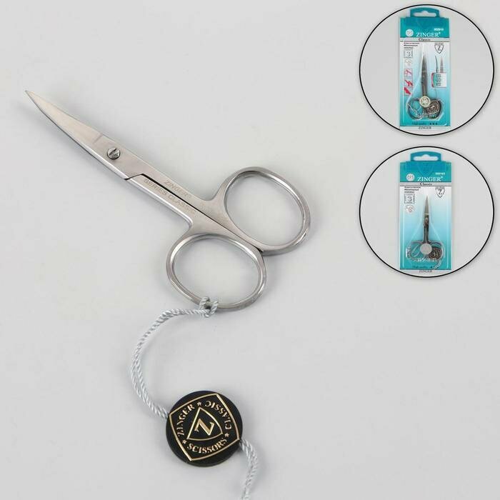 ZINGER Ножницы маникюрные, загнутые, широкие, 9 см, на блистере, цвет серебристый, В-116-S-SH