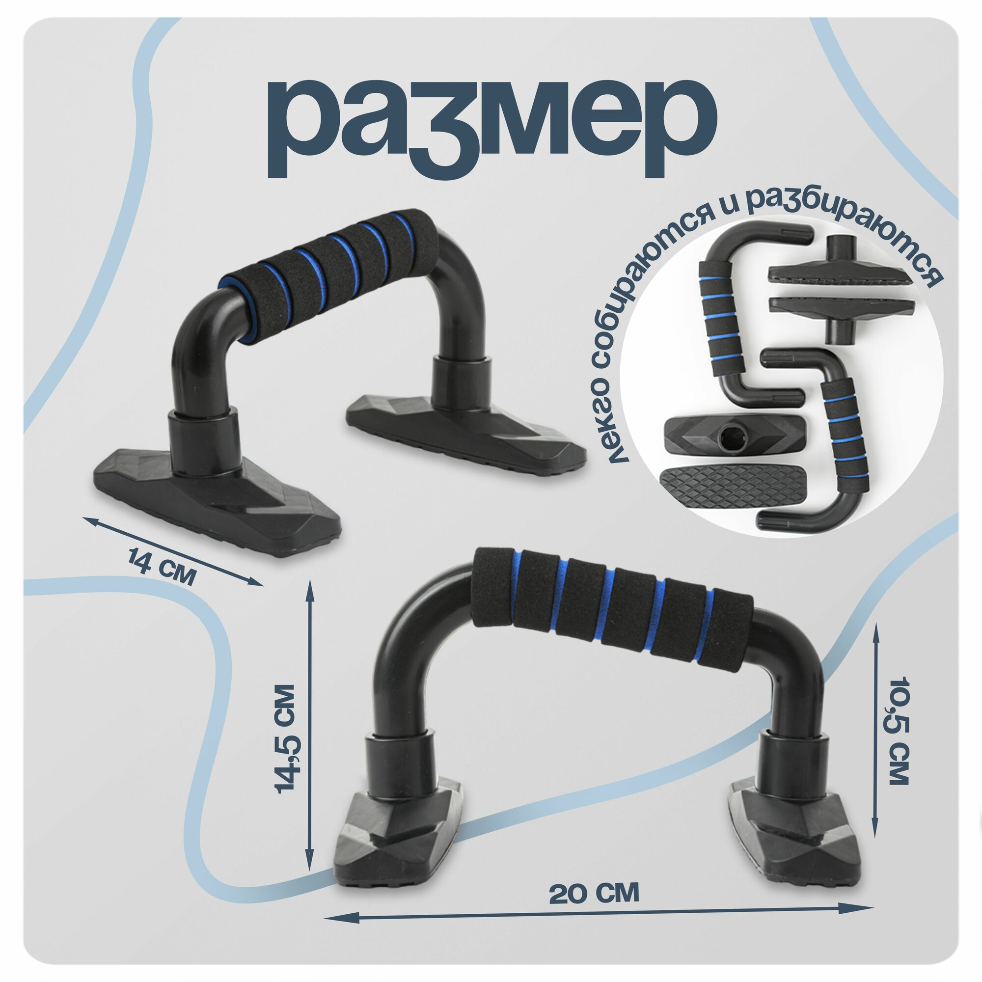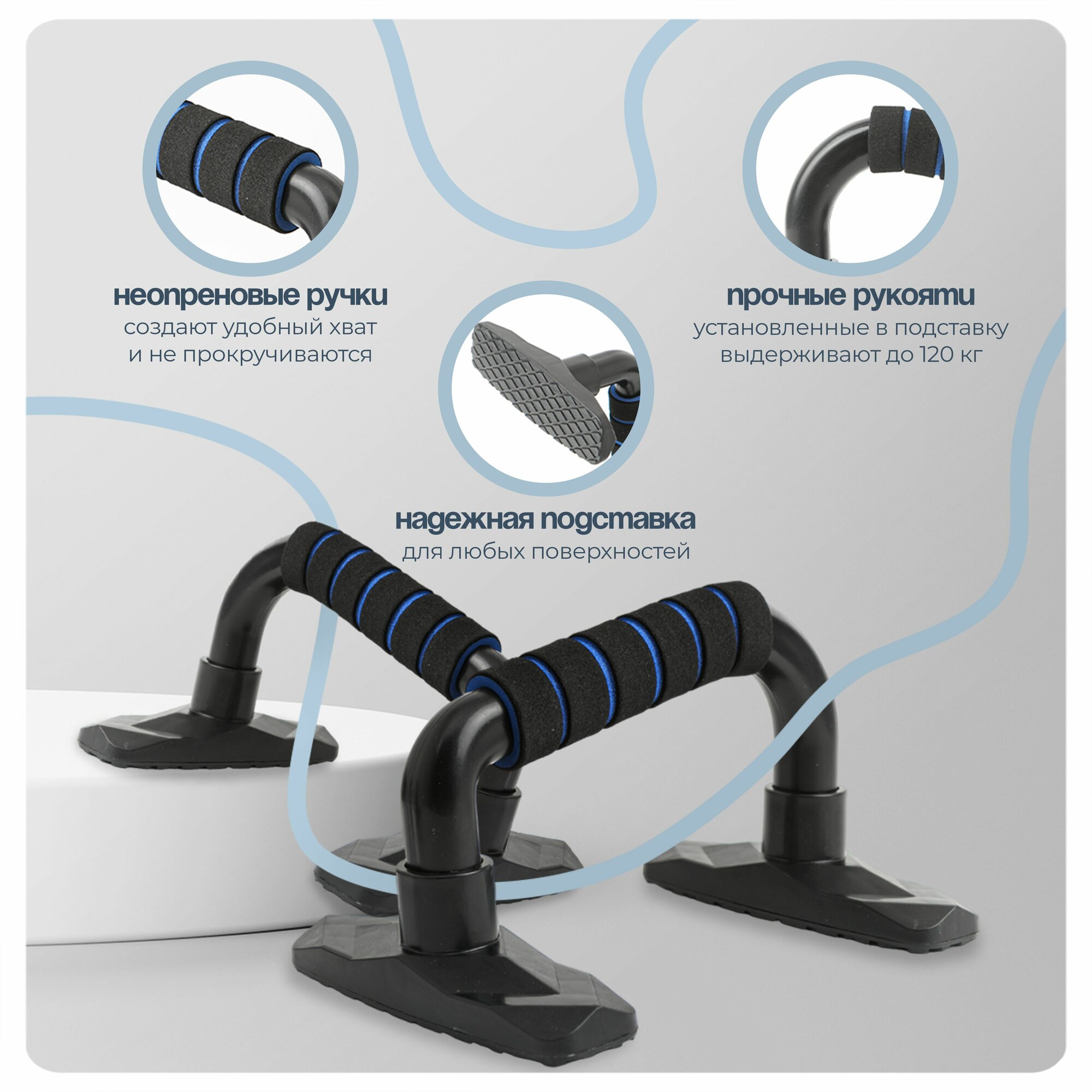 Упоры для отжиманий от пола / Стойки для отжиманий от пола, черно-синие интересное: