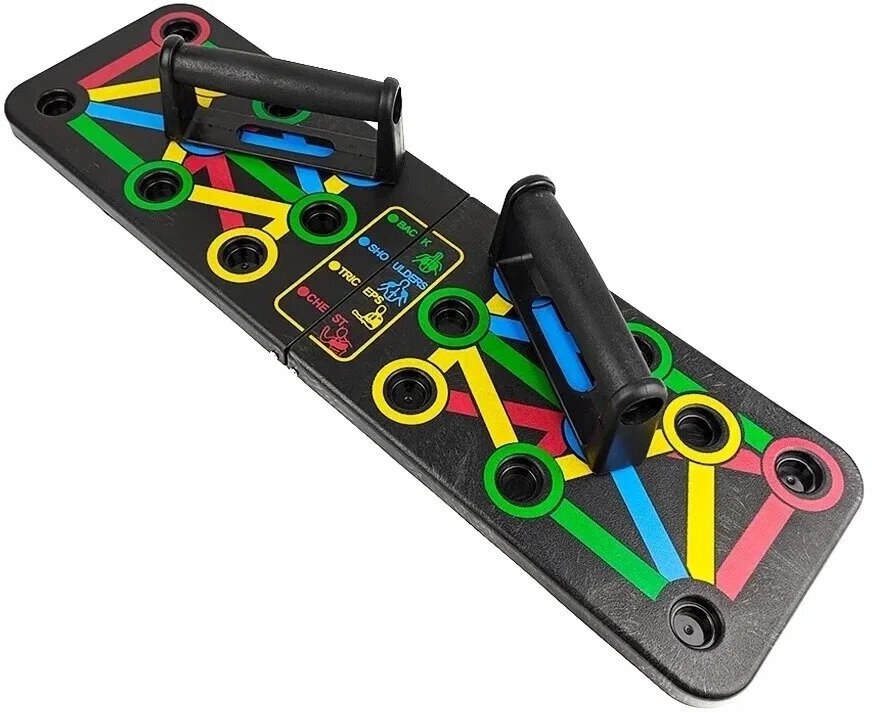 | Дополнительная информация | Доска с упорами для отжиманий размечена по специальной системе упражнений на различные группы мышц: плечи, спину, руки, грудь. |