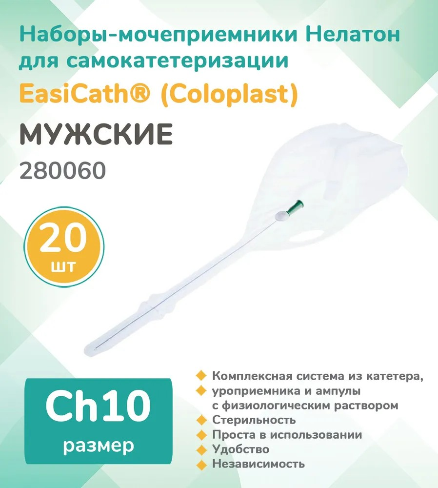 280060 Колопласт (Coloplast) EasiCath Set Набор-мочеприемник для самокатетеризации, мужской, Ch10 (20 шт.) интересное: