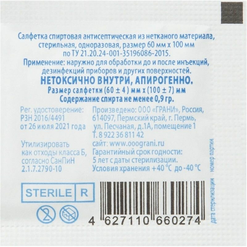 Салфетка спиртовая, антисептическая, этил. сп. 60х100мм Грани 100 шт/уп