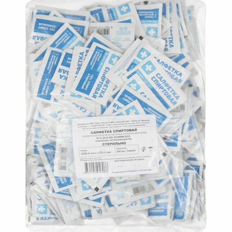 Салфетка спиртовая, антисептическая, этил. сп. 110х125мм Грани 250 шт./уп