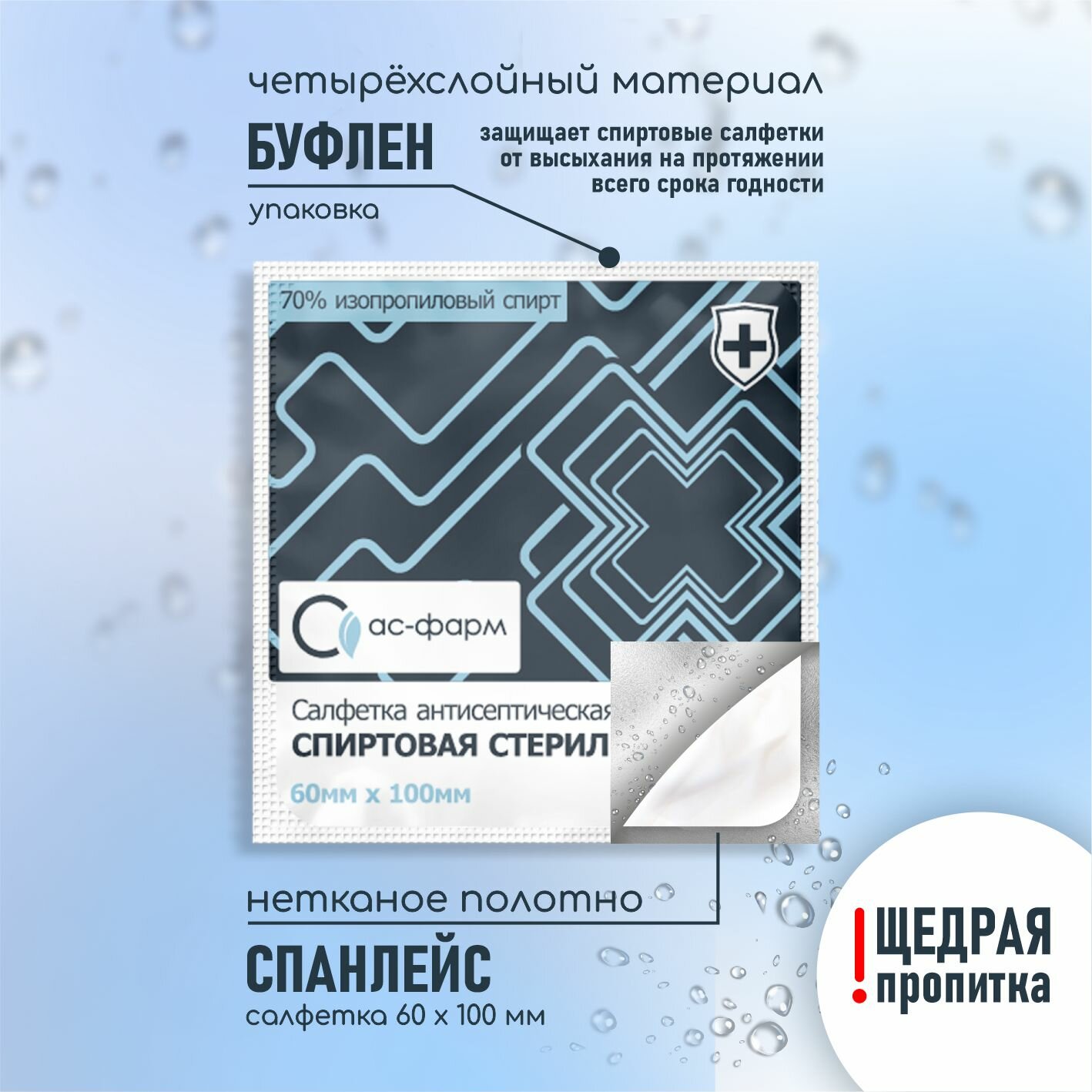 Салфетки спиртовые антисептические стерильные 400 шт. "АС-Фарм", 60*100 мм, интересное: