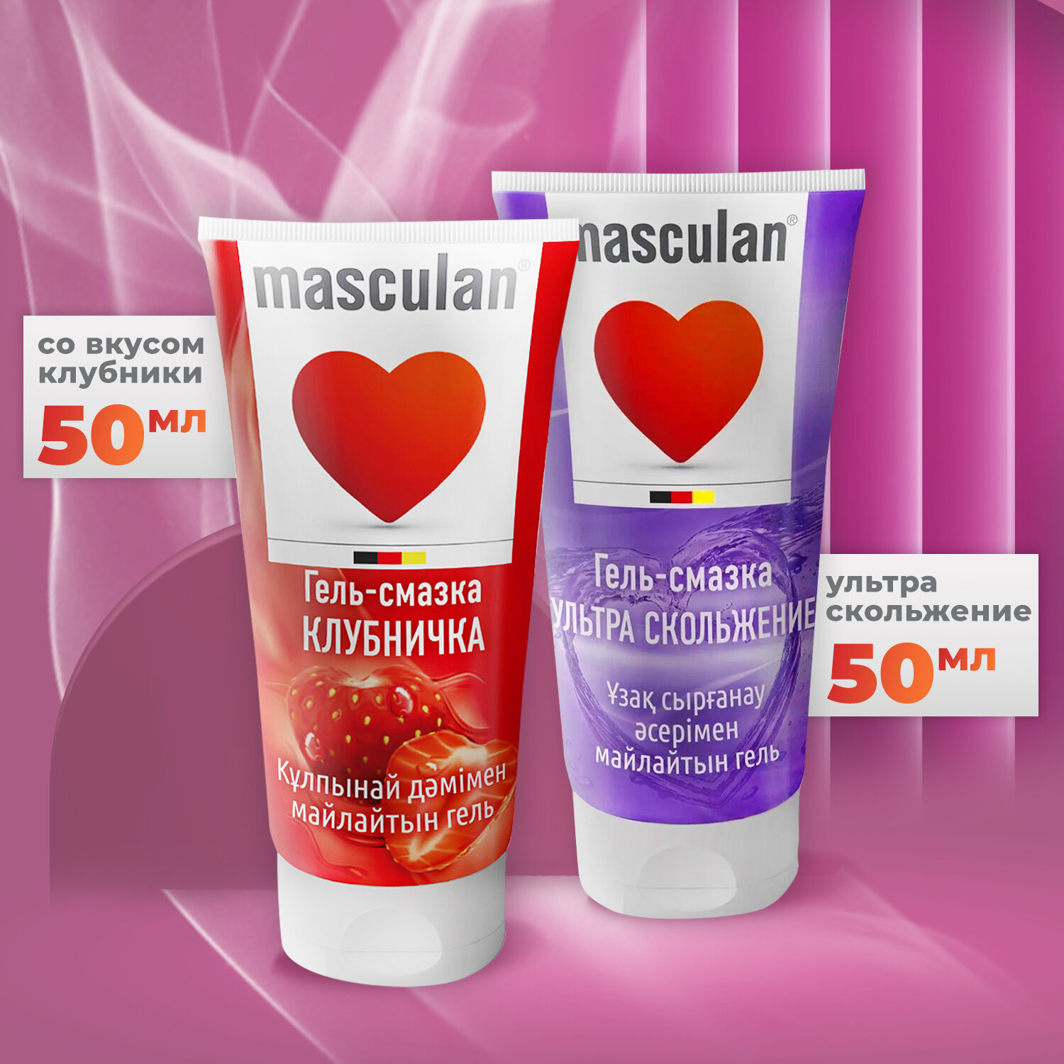 Купить Гель masculan ультра скольжение 50мл интимный с повышенной скользимостью и гель masculan клубничка 50мл интимный со вкусом клубники
